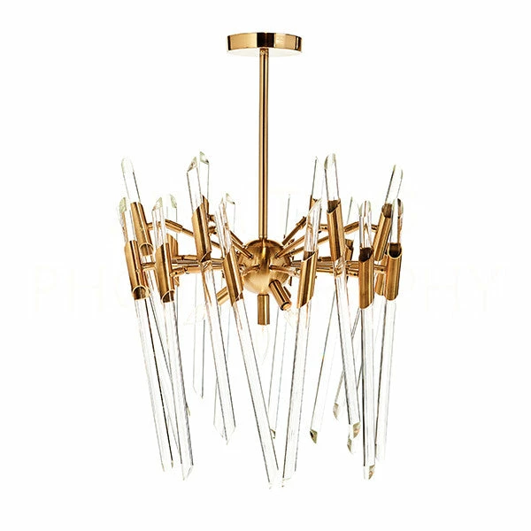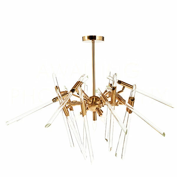 There’s nothing more powerful than a stint of downtime after a busy week is in the rearview mirror. Place our Themyscira Brass chandelier in the room in your home that you savor the most and the glow of the boldly articulated rods of glass will surely uplift the spirits. Also available in a nickel finish, this modern fixture will delight the lover of contemporary interiors.