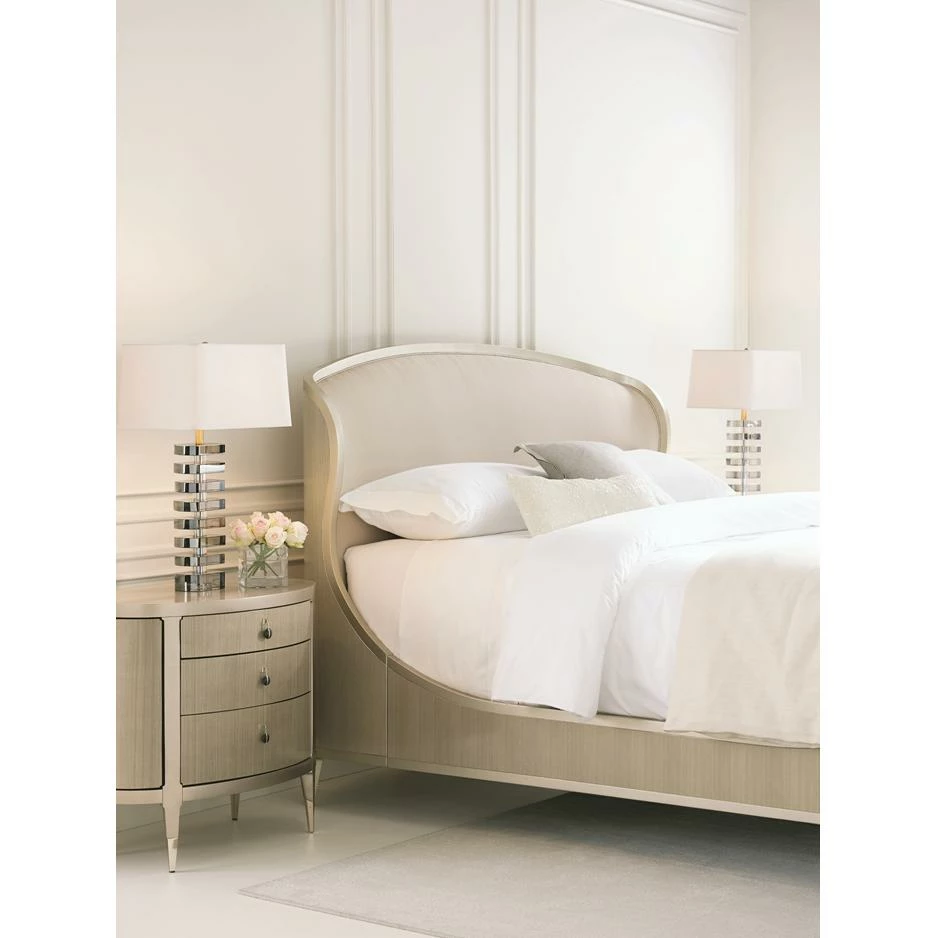 Nothings more valuable than a Good Night’s Sleep. More than just beautiful, this timeless bed adds sophistication to a space. Its shapely silhouette is crafted of Koto panels finished in an exquisite Champagne Shimmer finish. Metal ferrules in Whisper of Gold cap the legs and add an elegant finishing touch.