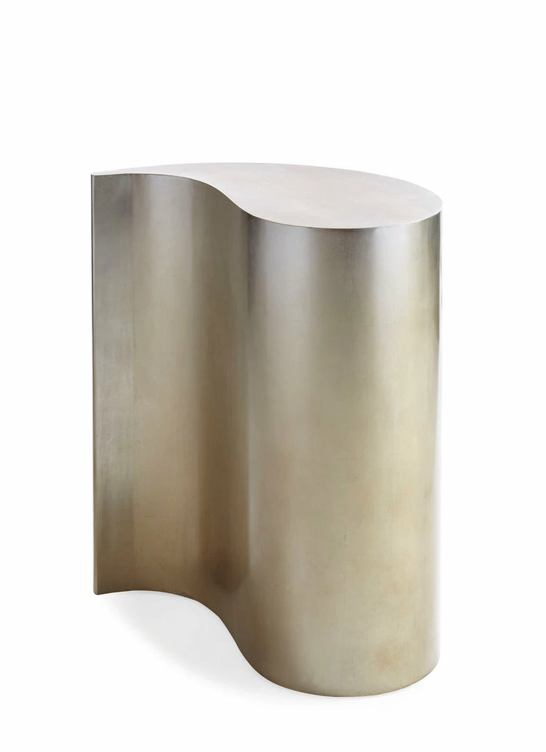 A witty little drink table that promises to stimulate quotable conversations. Use it alone to flaunt its interesting shape or use two that hug each other in a yin and yang configuration to form a single, circular side table. Either way, your guests are sure to be captivated by the table’s unique ombre finish that fades from a warm silver to elegant gold.