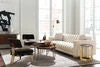 The Well-Balanced Sofa was inspired by Italian design and offers beautifully tailored channel tufting in a luxurious basketweave fabric in a shimmering Moonstone hue. This stylish vogue detailing and cosmopolitan silhouette makes this sofa the perfect focal point to build a spectacular room around in whichever chic city you’re in across the globe. A tailored, thin gold detail is incorporated into the sofa frame. Its squared arms are the perfect height for resting or reading. Suspended off the ground by a continuous Majestic Gold framework, this sofa appears to be lighter than air. This sofa’s sophisticated lines look beautiful when floating in an interior. Consider a pair of sofas in front of a fireplace or to enjoy a beautiful vista. It also pairs beautifully with the Well-Balanced Chair and Ottoman and our seriously stylish Svelte chairs.