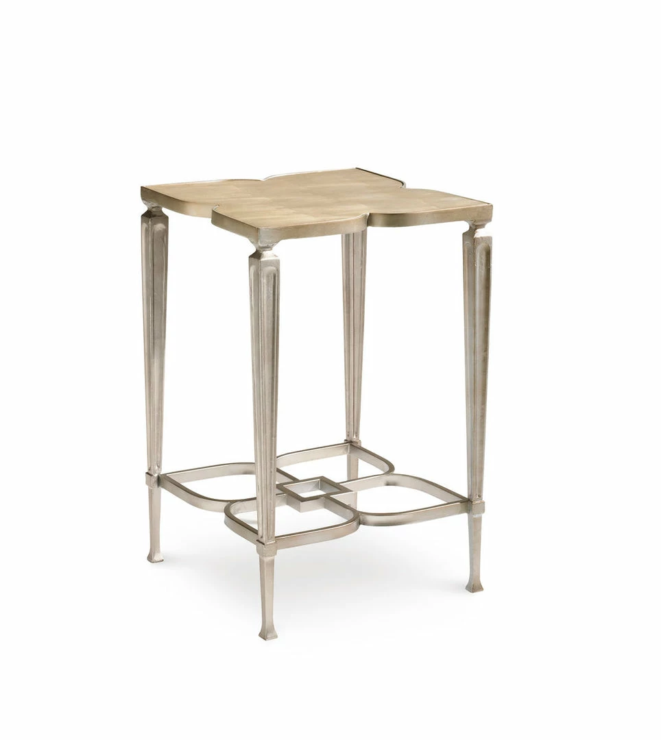 Destined to be a winner, our four-leaf clover shaped 16 x 16-inch table surface boasts a subtly metallic Taupe Silver Leaf finish and sits atop elegant, slender metal legs. Odds are good that there is a sofa, upholstered chair or chaise that will benefit from having this special little accent table nearby.