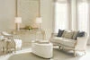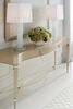 Slim and shapely, this long, elegant table fits in beautifully – even in the narrowest of spaces. Its classic silhouette and shaped top give a nod to its classic French heritage. An elegant Radiant Pearl finish highlights its exterior and hints of Sparkling Argent striping complete the look. Finished in Whisper of Gold, its plated metal stretcher lends modern refinement to heritage styling.