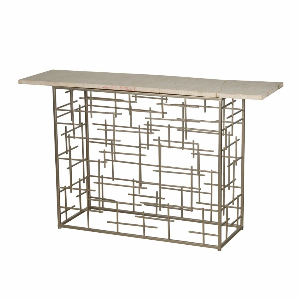 This table has a basket-like construction with a marble top.