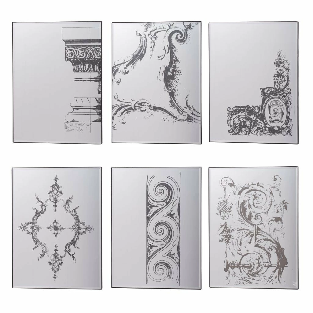 Each of the six mirrored panels in this set features a unique,elegant design for a look of understated glamour and vintage style.Hang all six panels together for a dramatic effect in a larger room or separate into smaller groupings around the home.With six panels,there are endless options for arranging these lavish panels to create the ideal,custom look for your space.