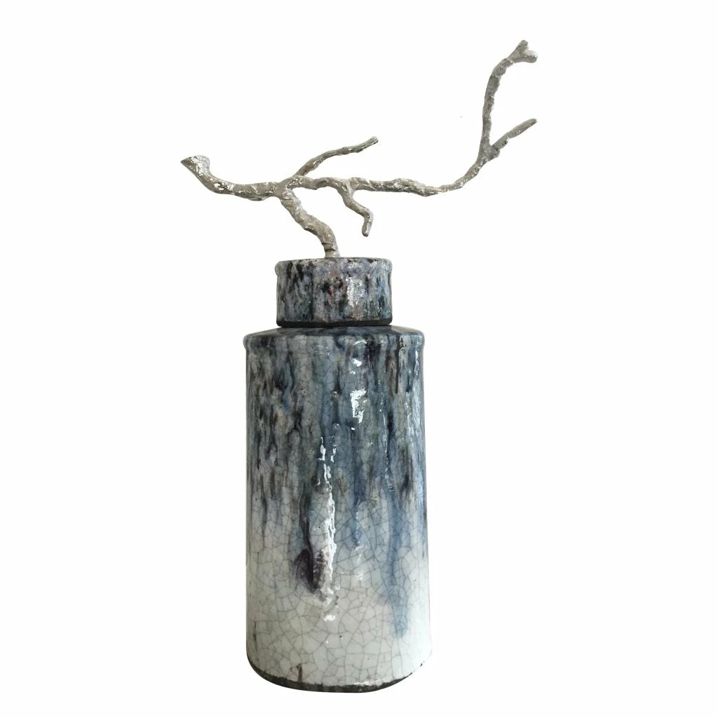 Inject a punch of creativity to your indoor space by displaying this Terracotta lidded jar. The distinctive design atop the lid easily grabs attention, while the gorgeous glaze finish enhances your interior decor. Measures: 11.5″L x 2.86″W x 19.7″H