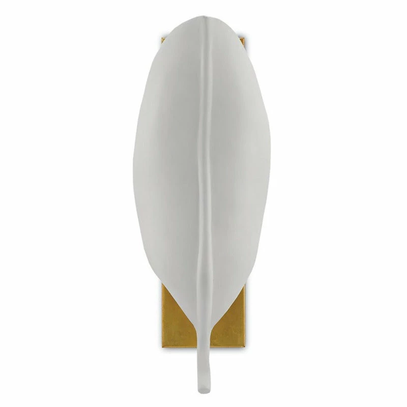 Fine artists have integrated nature‘s symbols into their compositions for centuries, a modus operandi our talented design team followed when they designed the Martine Wall Sconce. The graceful leaf that seems to wave in the wind as it undulates away from the wall plate is made of composite that has been treated to a gesso white finish. The wall plate is in a contemporary gold leaf finish to enhance the glow of the illumination.