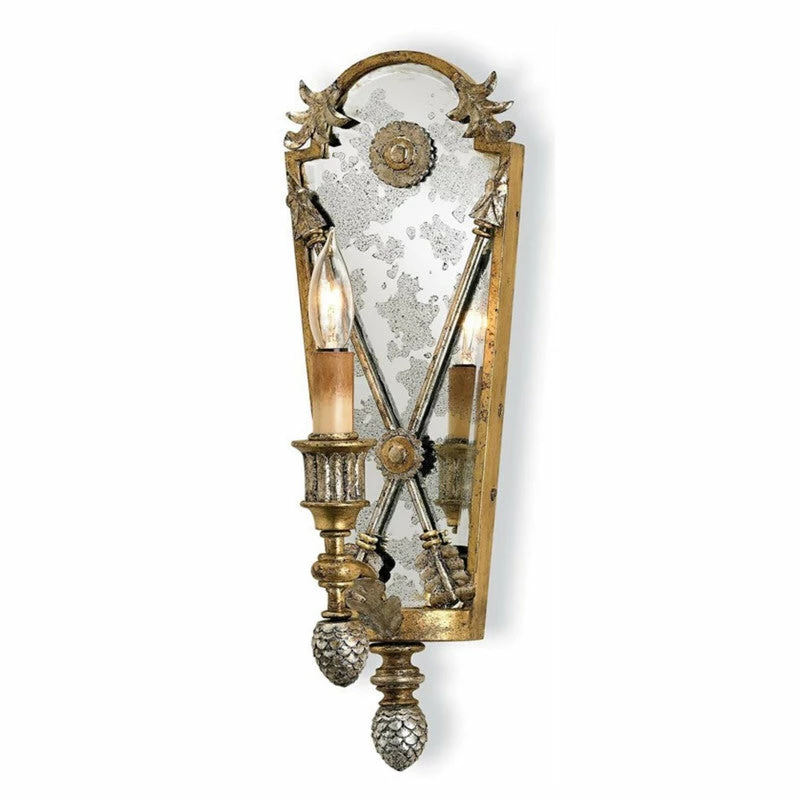 Italy became the land of many an exiled monarch once upon a time, and the exquisite Napoli Wall Sconce graced with arrow and acorn accents is a testament to one of the cities they inhabited. In gold leaf and majestic silver leaf finishes, this classically inspired Empire sconce with a mirrored wall plate is in the Lillian August Collection.
