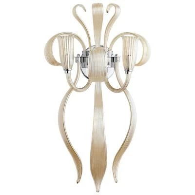 Sensual curves and contours turn delicate glass into an artistic display. This two-light chrome and cognac glass wall sconce is a compelling addition for a soft, contemporary look.
