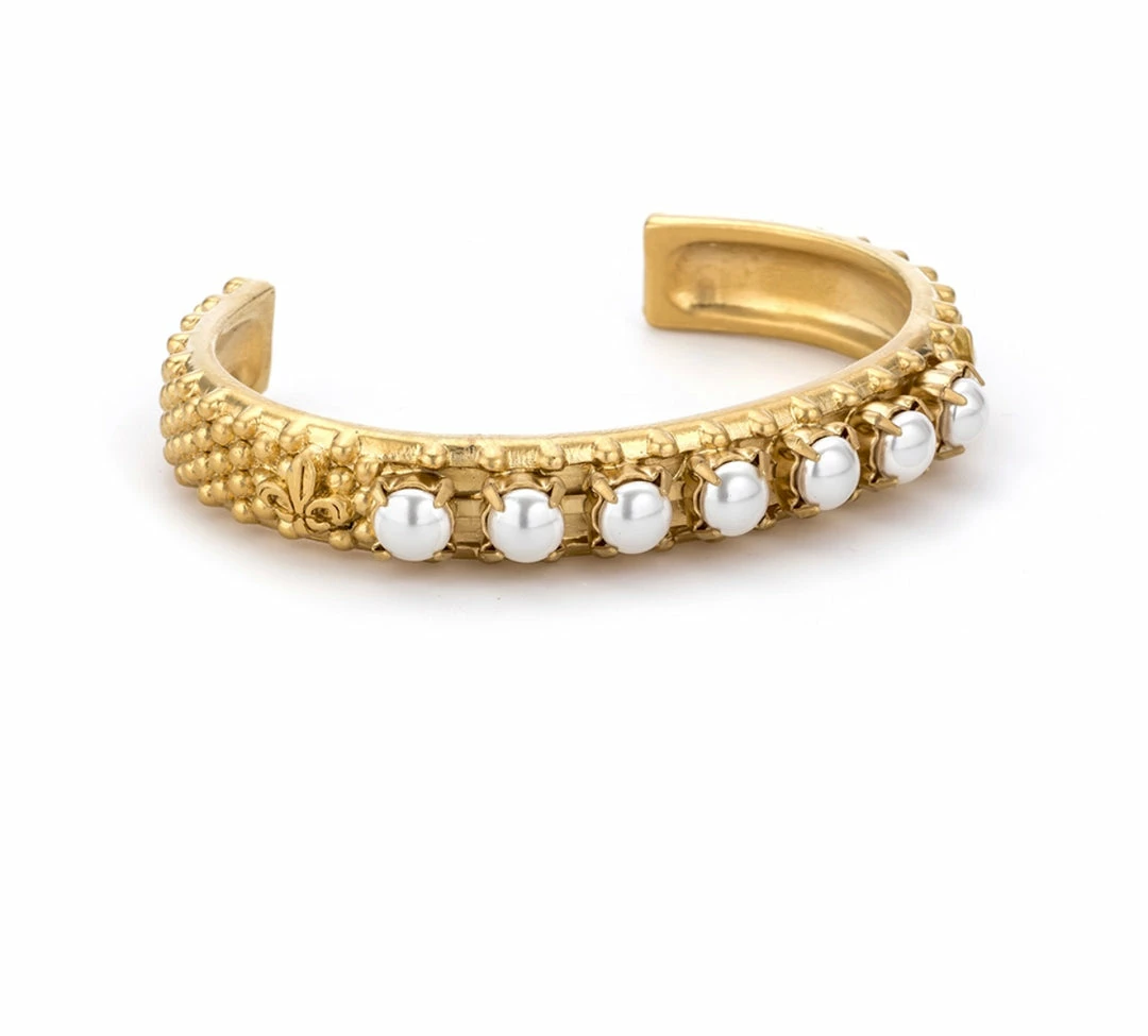 This exclusive Fleur De Lis bangle features white Swarovski Pearls. Absolutely beautiful all by itself but best when paired with our other designs.