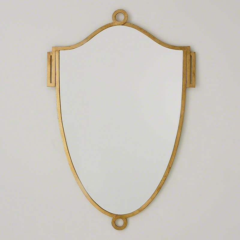 A Roger Thomas modern interpretation of the traditional Chinese shield mirror. It is made of iron with a gold leaf finish. Available in Large and Small sizes.