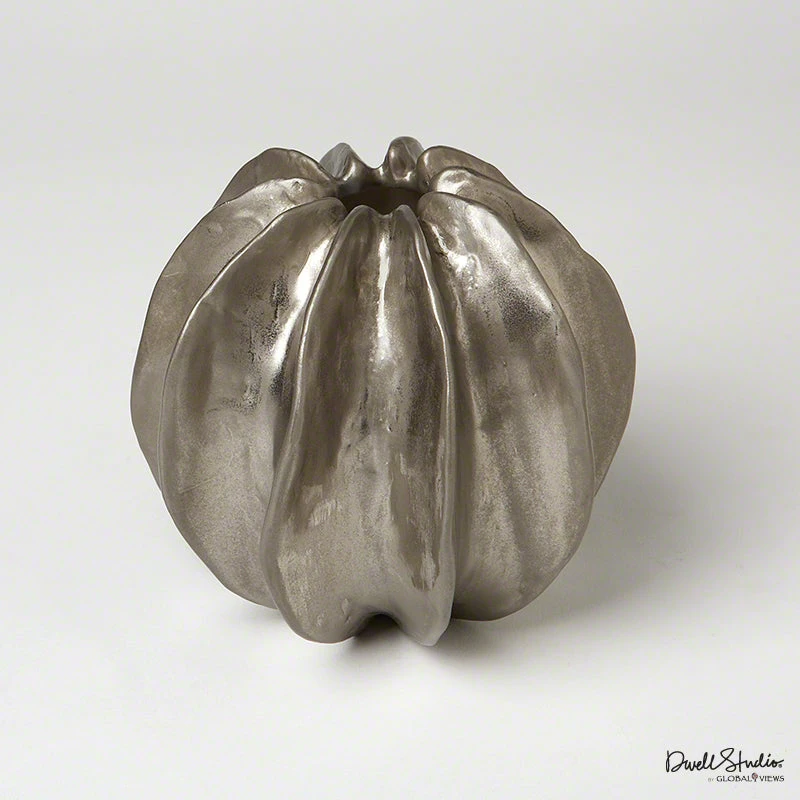 This chic vase is an easy way to layer the home with texture. Ceramic construction with matte silver finish.