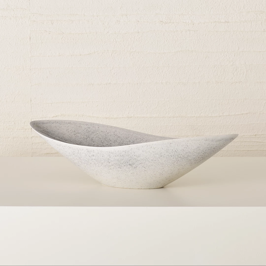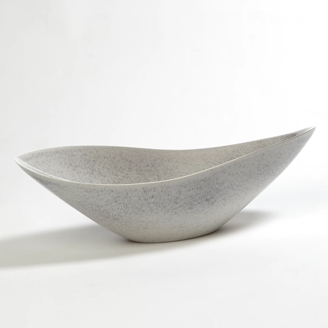 One of our best selling silhouettes of oval bowls, our Sexy Bowl is shapely and refined. Perfect scale and shape for those long narrow places in an interior such as a mantle, console table, or cocktail table with other objects. Glazed in a highly reactive grey glaze so no two will be alike. Not safe for food.