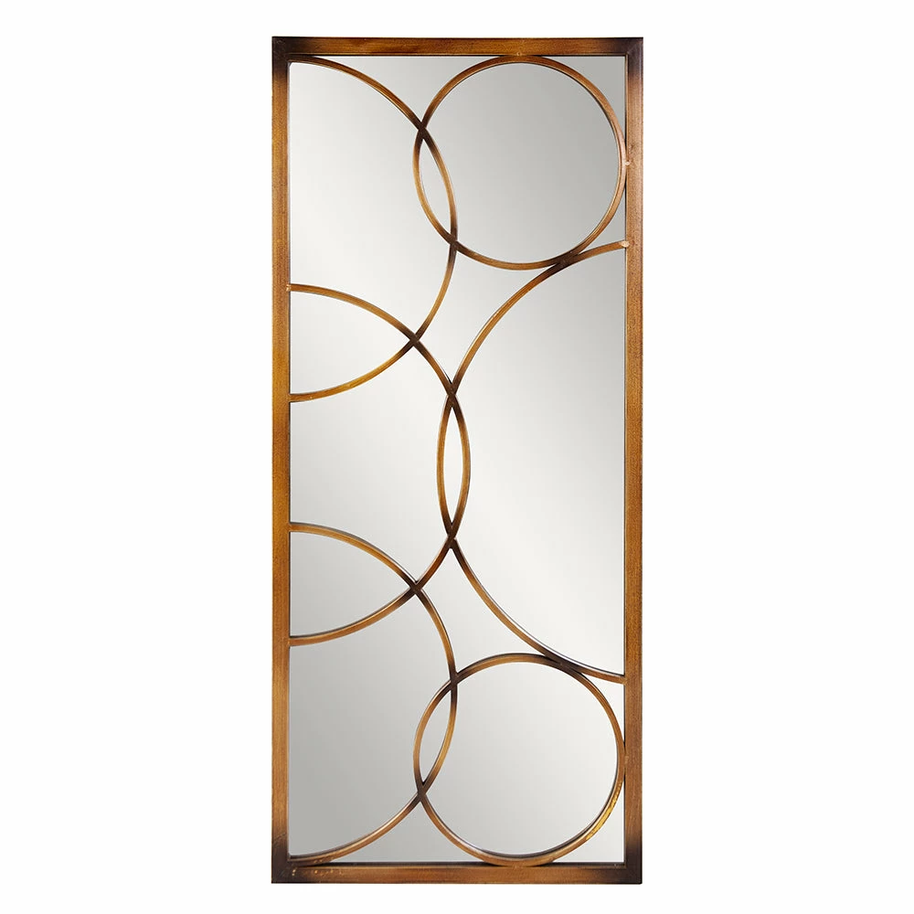 Our Brittany Mirror features a narrow rectangular metal frame that is characterized by its overlapping circular overlays on the mirror. The piece is then finished in a brushed antique bronze. Alone or in multiples, the Brittany Mirror will beautifully accent your wall. It is a perfect piece for an entryway, bathroom, bedroom, or any room in your home!