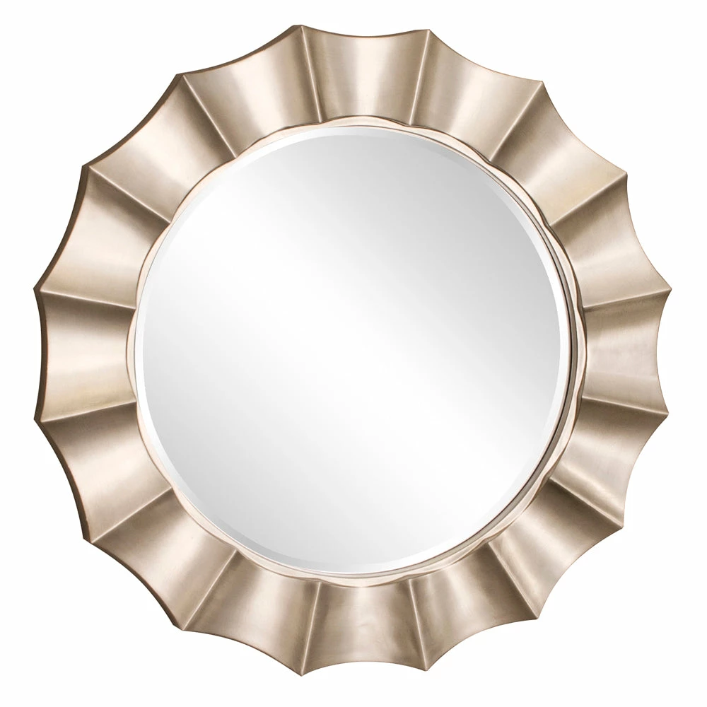 Our Corona Mirror is a round mirror bordered by a rippling wave design. The piece is then finished with a silver leaf giving the mirror its bold Contemporary appeal. The Corona Mirror is a perfect focal point for an entryway, bathroom, bedroom or any room in your home. D-rings are affixed to the back of the mirror so it is ready to hang right out of the box! The glass on the piece is beveled adding to its style and beauty. Also available in an oval shape.