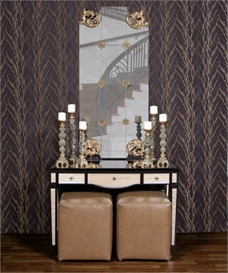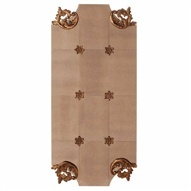 Donatello Mirror is a rectangular piece with scalloped edges. While it doesn’t have an actual frame bordering the mirror, it features the most gorgeous antique gold adornments on the glass. The mirror is composed of rectangular panels that are each antiqued that enhance its romantic style. It is a perfect focal point for an entryway, bathroom, bedroom or any room in your home. D-rings are affixed to the back of the mirror so it is ready to hang right out of the box! The Donatello Mirror can be hung vertically or horizontally.