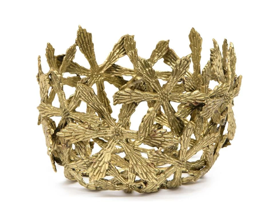 A hand carved and cast Shastas are collogued together to complete this petite satin brass bowl.