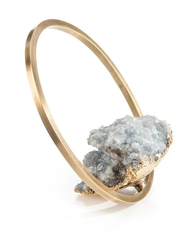 An eternal oval hoop cradles a beautiful piece of celestite.