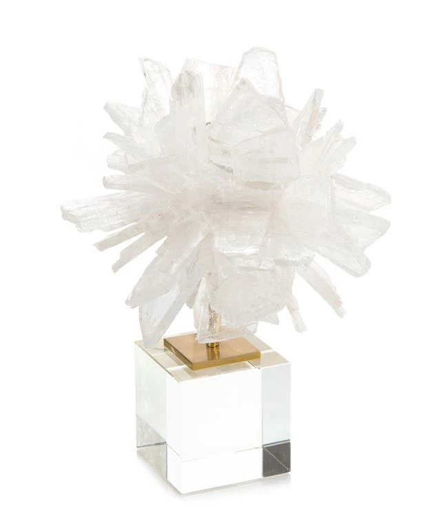 Shards of clear selenite encase a glass votive holder, which appears to float over a crystal base. Votive not included. *** Disclaimer: Selenite is a natural crystalline material. By its sheer nature, imperfections such as other mineral deposits, which may appear as colored sections or varying crystalline structure, are not only expected, but indeed add to the beauty of the piece. The softness of selenite may result in separation of sections of crystal, which can be reattached with the use of a clear adhesive.