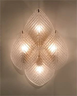Textured and Frosted Glass Petal Four Light Wall Coupe. Candelabra Base, 25 Watt Max, 2 Type B Bulbs, E 12, TTM: