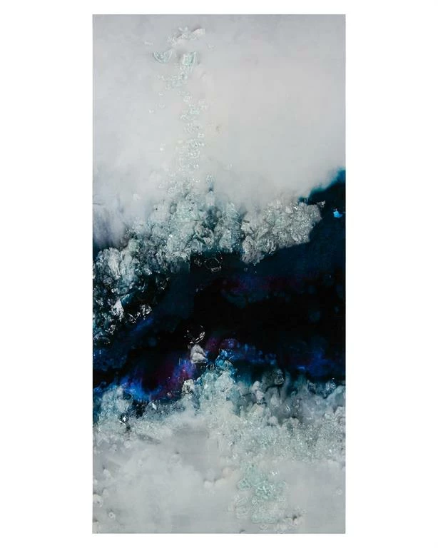 Flowing River, a triptych taken from Mary Hongs Piece Mystic River, is a beautiful creation featuring her signature broken glass and high gloss finish.