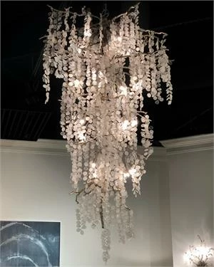 Shiro Noda Variegated Frosted and clear Crystal clusters Dramatically Drip from this Ornamentally Stunning Twenty One Light Chandelier. 21 Bulbs included in box, Canopy: 6″ X 1″.