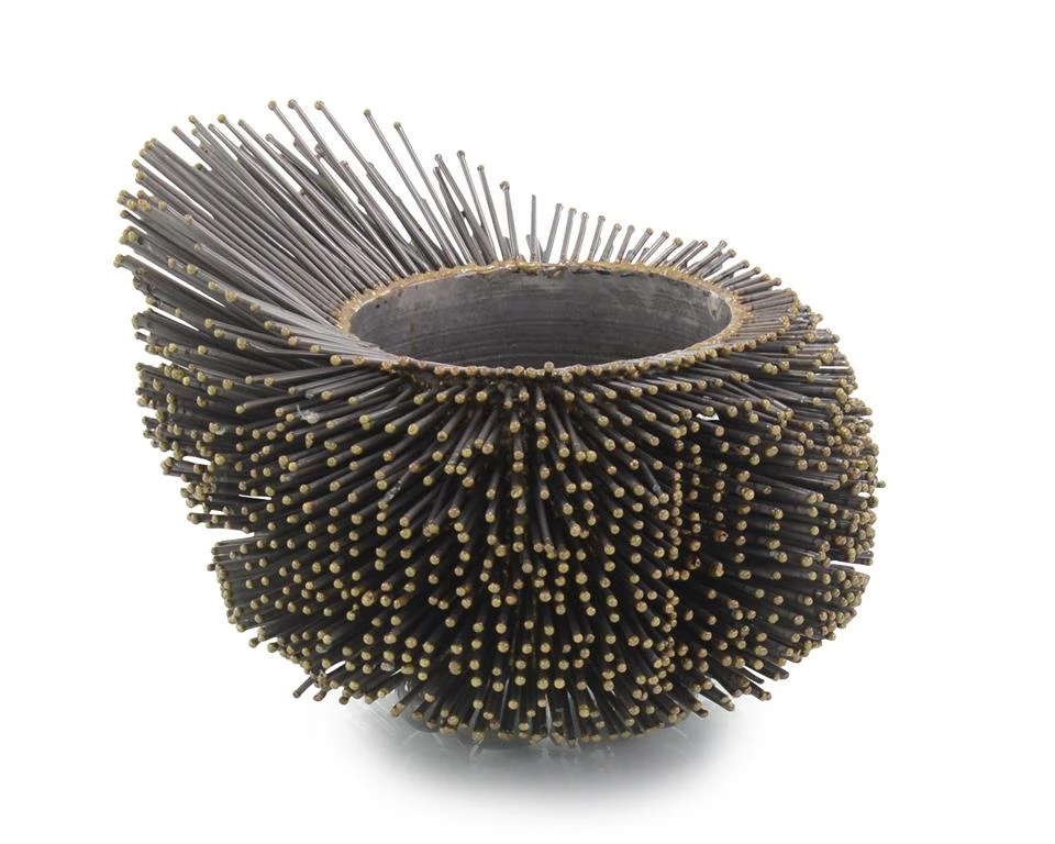 Stubble bowl in the Brutalist style is made of hundreds of hand applied rods and accented with molten brass.