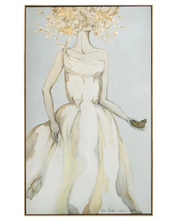 This stunning figural representation in charcoal and gold tones by Zara Brown is an incredible work of art. The piece features a hand painted gold molding.