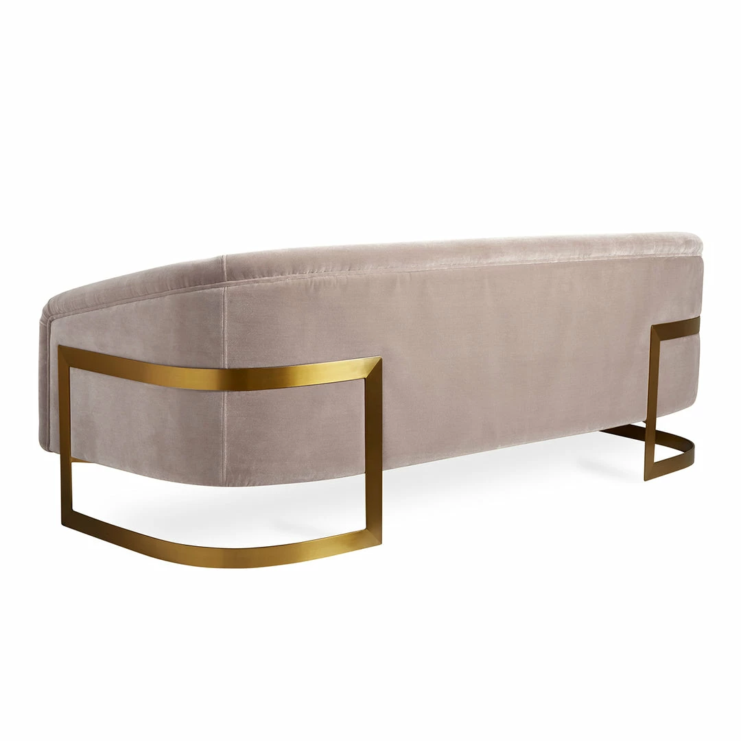 Sculptural enough to float in a large loft, but cozy enough to curl up and watch tv, our Bacharach Sofa shows you can have it all. Available in dreamy Como Champagne velvet cradled in a brushed brass frame or deep blue Lido Reef velvet cradled in a brushed stainless steel frame.