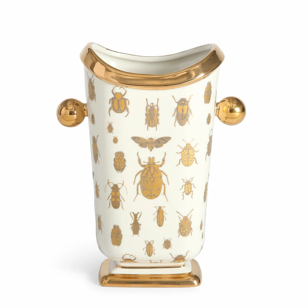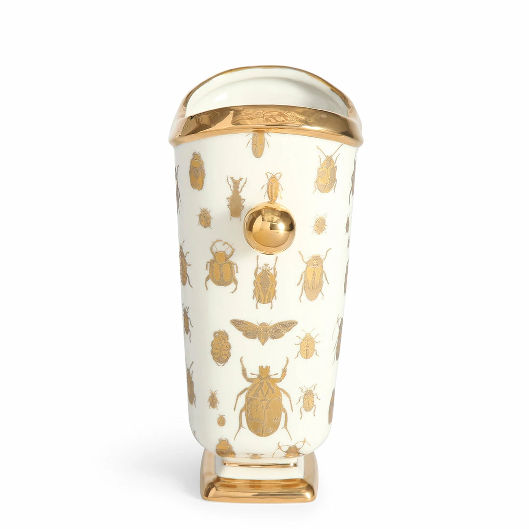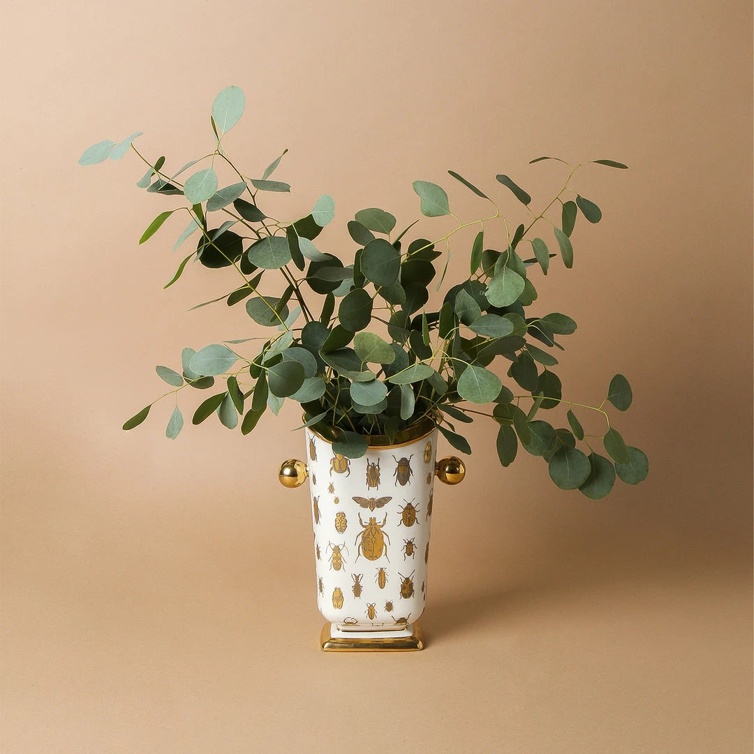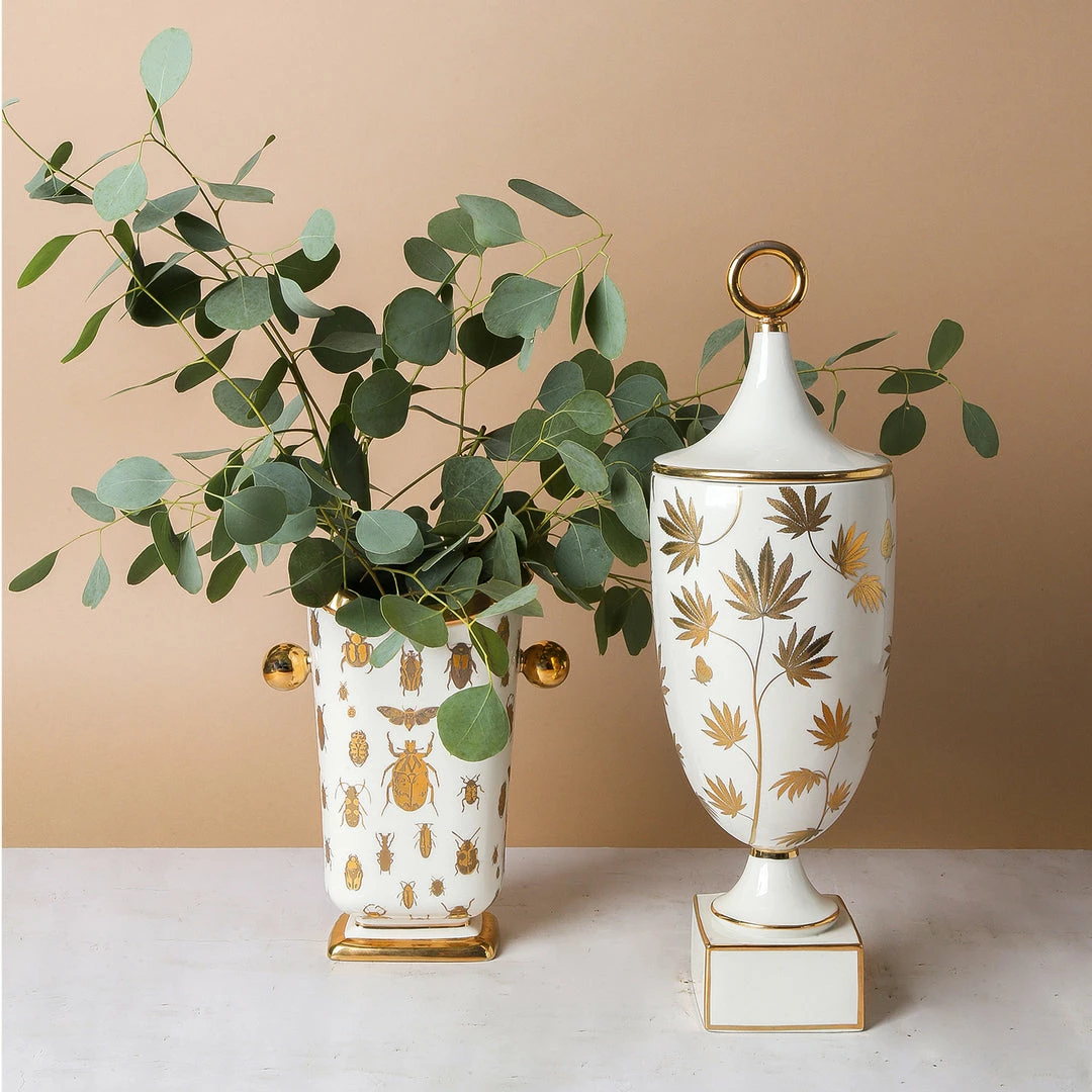 Observe the science of chic. Limited-quantity editions, our Botanist vessels elevate your everyday look at leaf and wing. Glossy high-fired porcelain wrapped in shimmering gold silhouettes, our Specimen Vase is the perfect rich hippie must-have—a natural attraction with or without flowers.