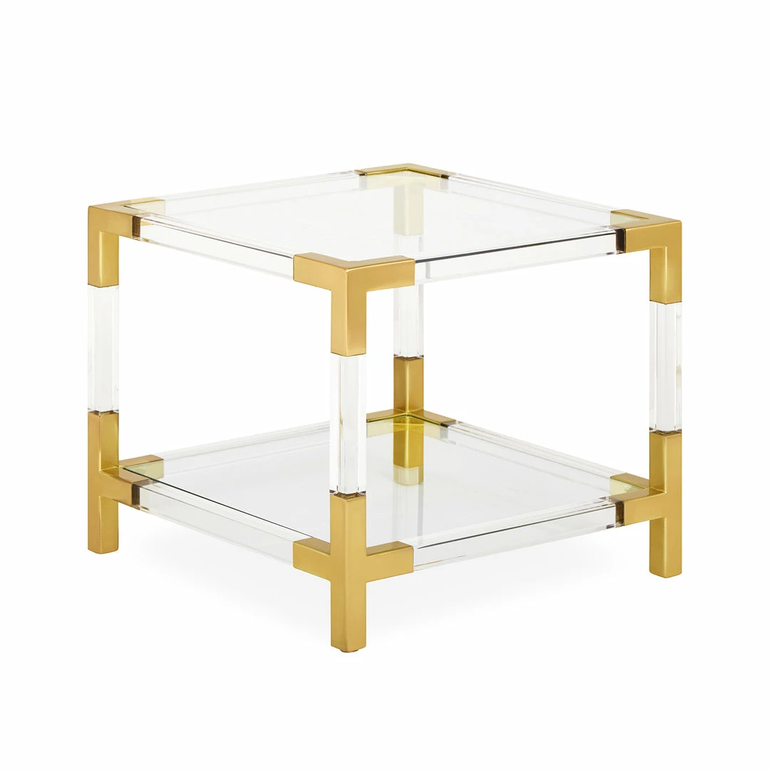Our Jacques Collection is the perfect blend of simplicity and glamour, modern and traditional. In luxe clear acrylic with brushed brass accents, this petite cube is perfect next to your sofa, by your bed, or saddled up next to your favorite chair. The second shelf gives you plenty of space for storage and styling your favorite books and baubles.