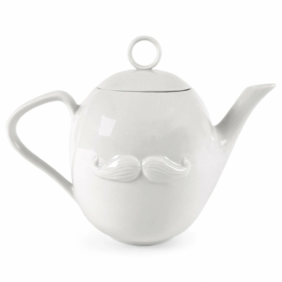 Our reversible Muse Teapot, inspired by our love affair with Salvador and Misia, is hand-sculpted white porcelain with a sheer glossy glaze. Mustachioed on one side, full-lipped on the other.
