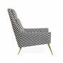 Our Ultra Lounge Chair goes POP in limited-edition black and white Milano patterned upholstery. This graphic and glamorous armchair is generously scaled and expertly pitched atop polished brass legs. A nod to Italian Modernism, a hint of Space Age futurism, a jolt of electric pattern.