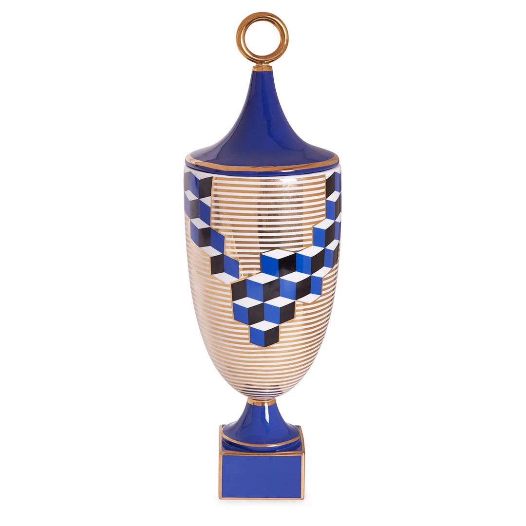 Traditional shapes, graphic patterns, and gobs of gold conspire to create this classic meets cutting edge collection.