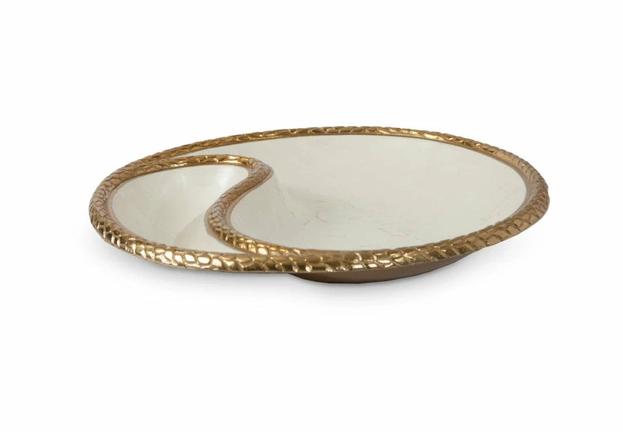 This beautiful Yin Yang Bowl is snow white and the rim is hand painted in gold. It’s great as centerpiece or it can be used with other items from the Florentine collection. This bowl qualifies for Free Shipping.