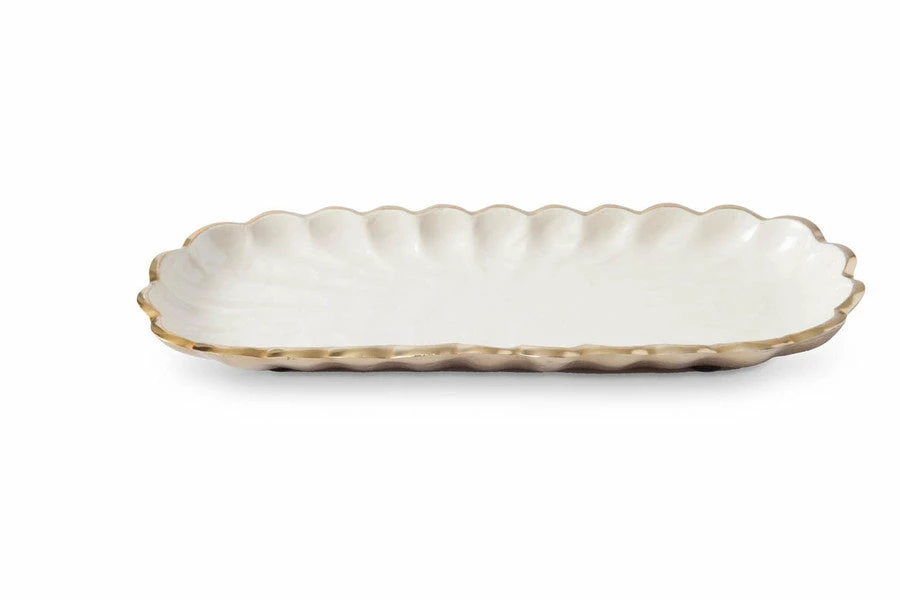 Peony 14″ Rectangular Tray. Fill your home with beauty. Just like the Peony, Julia Knight’s serveware pieces are beautiful, but never high maintenance! Knight’s romantic Peony Collection is known for its signature scalloped edges that embody the fullness, lushness and rounded bloom of nature’s “Queen of Flowers.” The Peony has been cherished for centuries and is known worldwide for symbolizing prosperity, honor, good fortune & a happy marriage! Handcrafted and painted by artisans, this 14″ Rectangular Tray is perfect for hors d’Oeuvres, desserts or bread. Mix and match all of the remarkable colors in the Peony Collection or pair with pieces from Julia Knight’s Floral, Classic or By the Sea Collections! The Snow Tray qualifies for Free Shipping.
