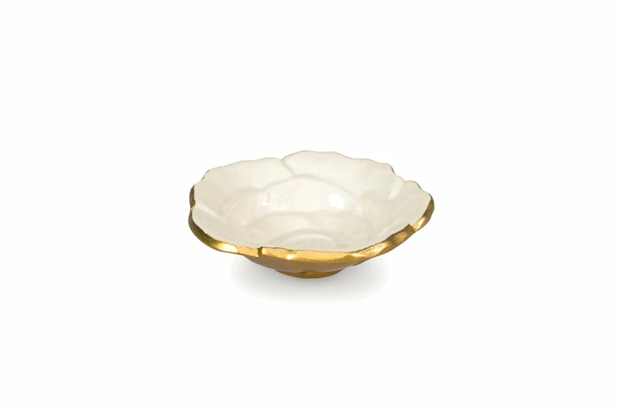 Rose 4″ Petite Bowl. Julia Knight’s Rose Bowls are as beautiful as nature’s finest flower in full bloom. Each piece is individually hand-made of sand cast aluminum -which is sculpted, polished and finished with a proprietary blend of enamel mixed with crushed mother of pearl powder that is hand painted to form unique capiz-like swirls. The tiered petals blossom outward to both sculpturally portray the look of a blossoming rose and create a beautiful concave silhouette. This 4″ Petite Bowl is the perfect piece for nuts, candy, sauces or even jewelry! Beautifully mixes and matches with Julia Knight’s other floral and leaf silhouettes to create a flourishing table display! Check out all of our stunning color options! Free Store Pickup.