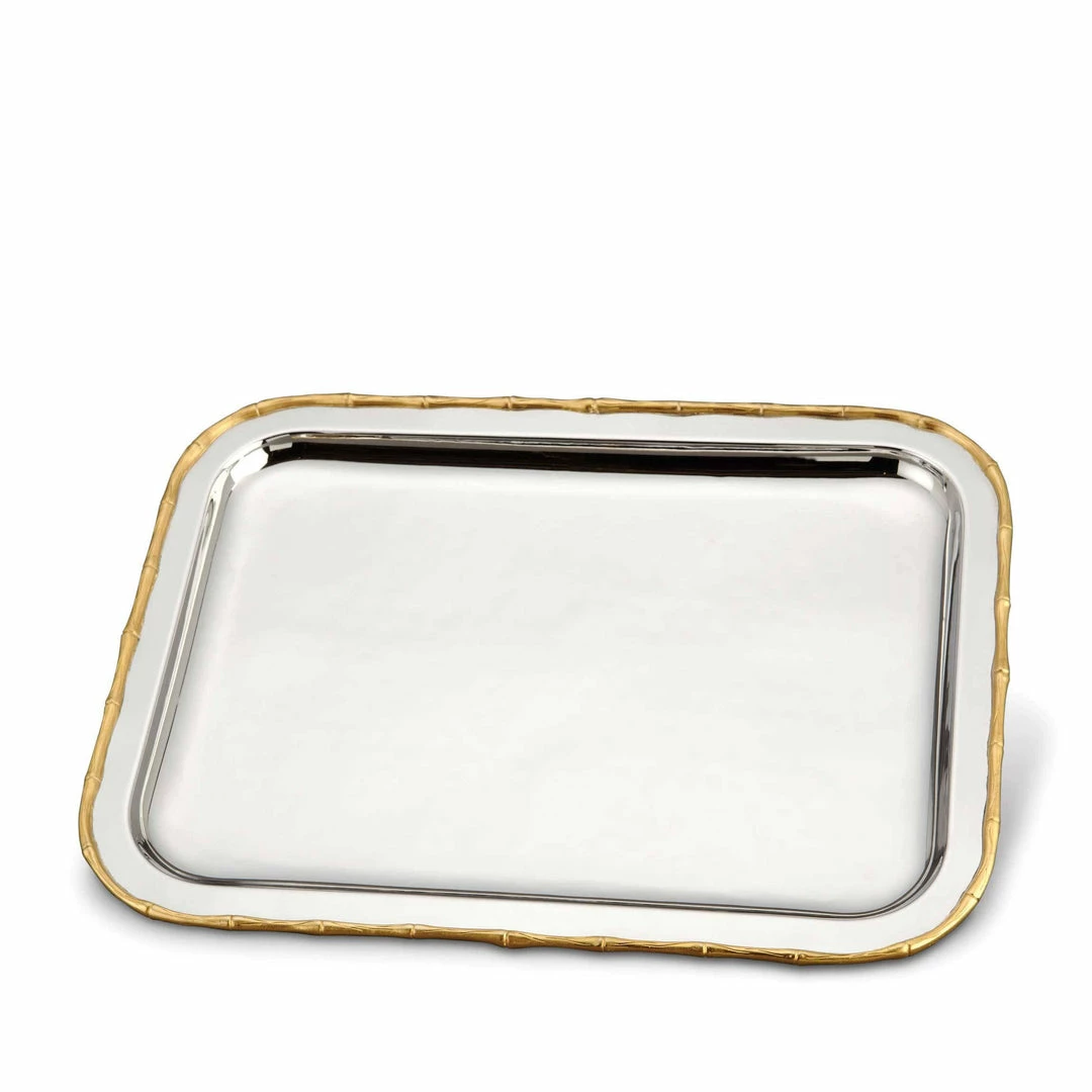 The Evoca collection juxtaposes the metallic with the organic to create a dazzling contemporary ensemble. Set against the seemingly liquid surfaces of stainless steel and nickel-plated brass, the delicate 24K gold-plated bamboo accents are applied by hand to create a collection with a unique sculptural beauty.
