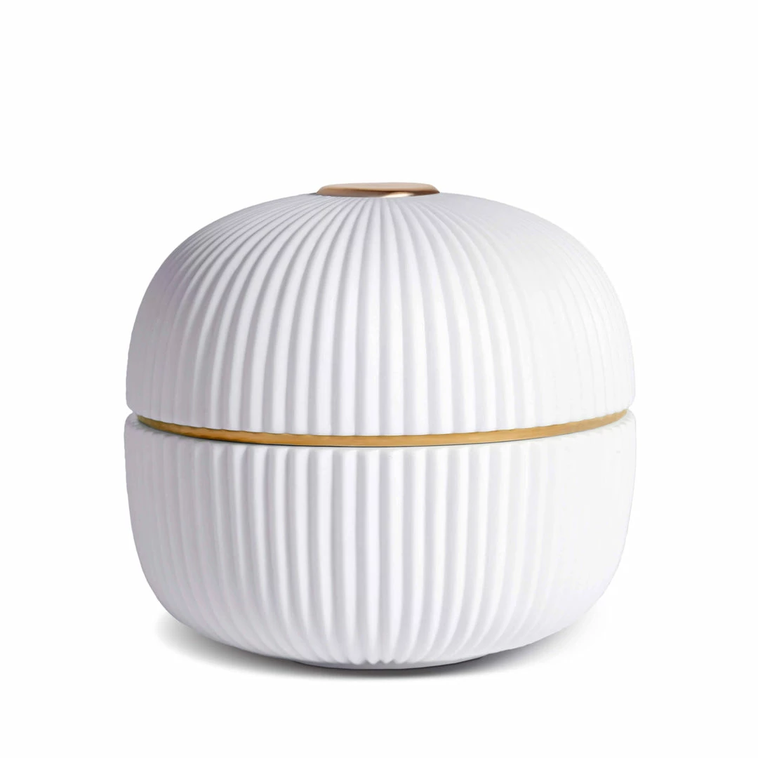 Inspired by the Ionic order of classical architecture, this collection offers functional and minimal designs for a chic coffee and dessert service. Crafted from brilliant white Limoges porcelain in a fluted vertical design and accented with gold for a touch of opulence.