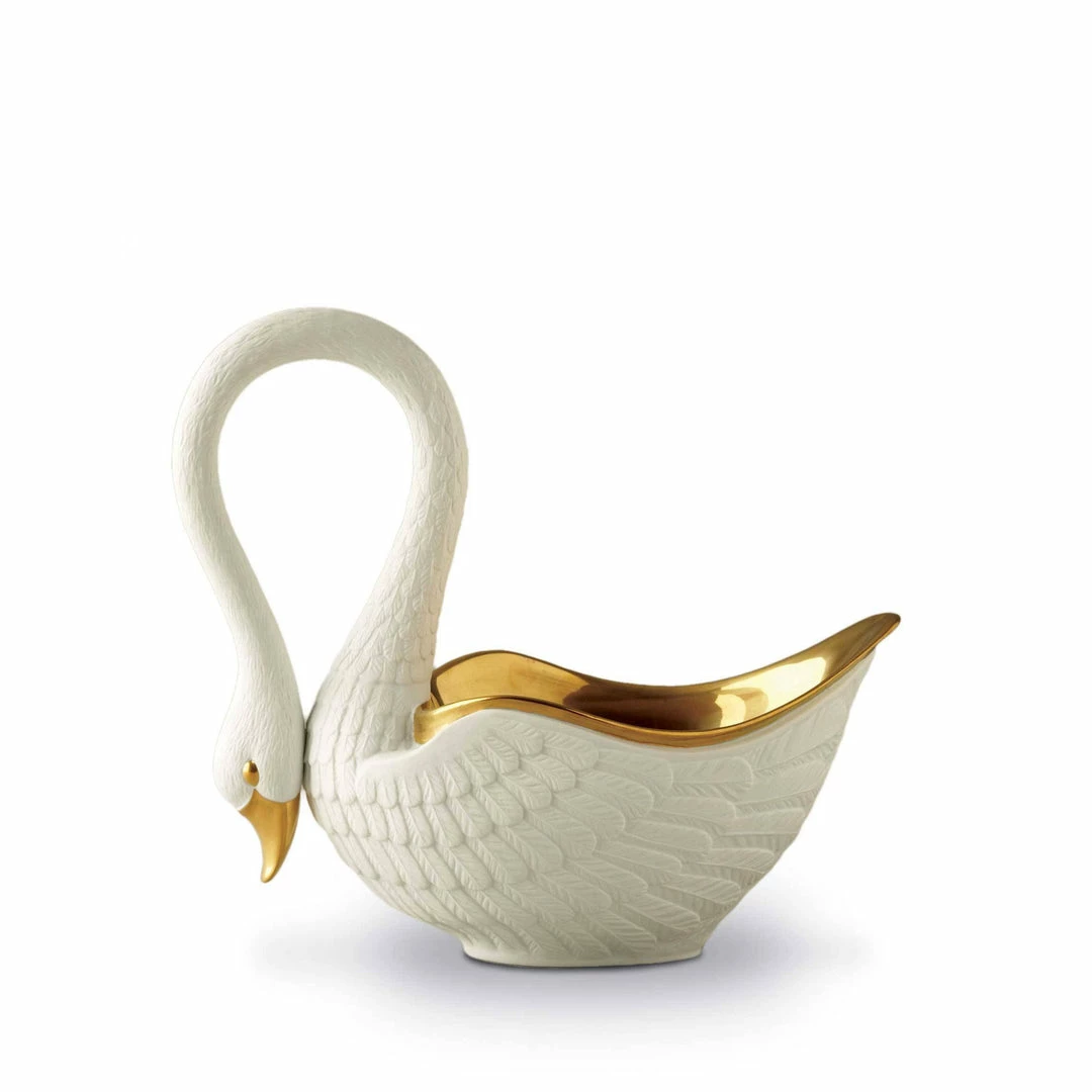 Inspired by the highly sculptural and beautifully detailed porcelain of the 19th century Empire period, the Swan bowls proudly nod to antiquity with unmistakable modern grace. From the luminescent, hand-gilded 24K gold of the bowl to the silky feathers on the curve of the neck, each piece is a singular and exquisite work of art, sculpted and finished entirely by hand.Â