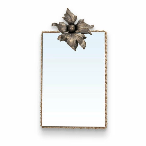 Dainty and elegant mirror with hand painted iron floret in champagne and iron tone.