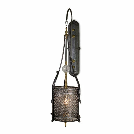 This distinctive sconce with decorative iron shade is pure chic elegance.