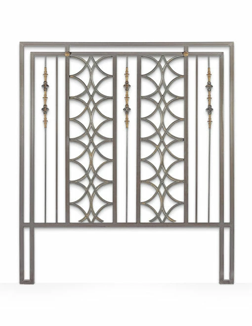 Hand forged iron with glittering smoke cut crystal accents and vintage brass details.