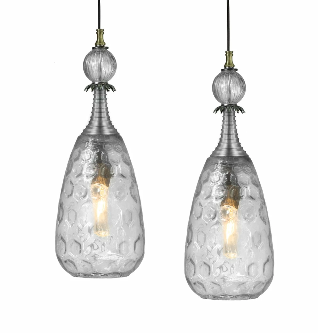 Honeycomb glass pendant in brush silver finish with  6′ vintage style fabric cord – can be custom made longer upon request.