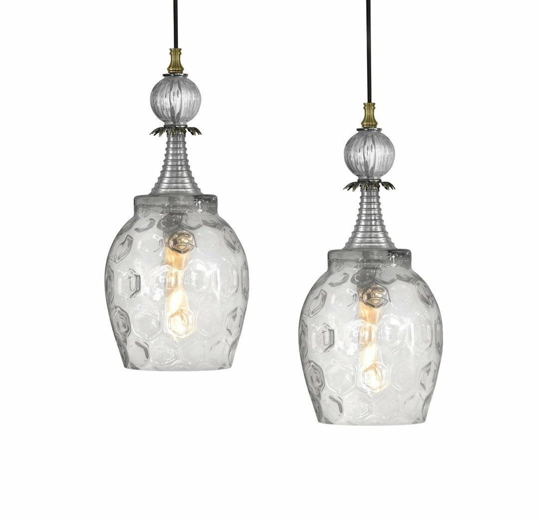 Honeycomb glass pendant  in brush silver finish with  6′ vintage style fabric cord – can be custom made longer upon request.