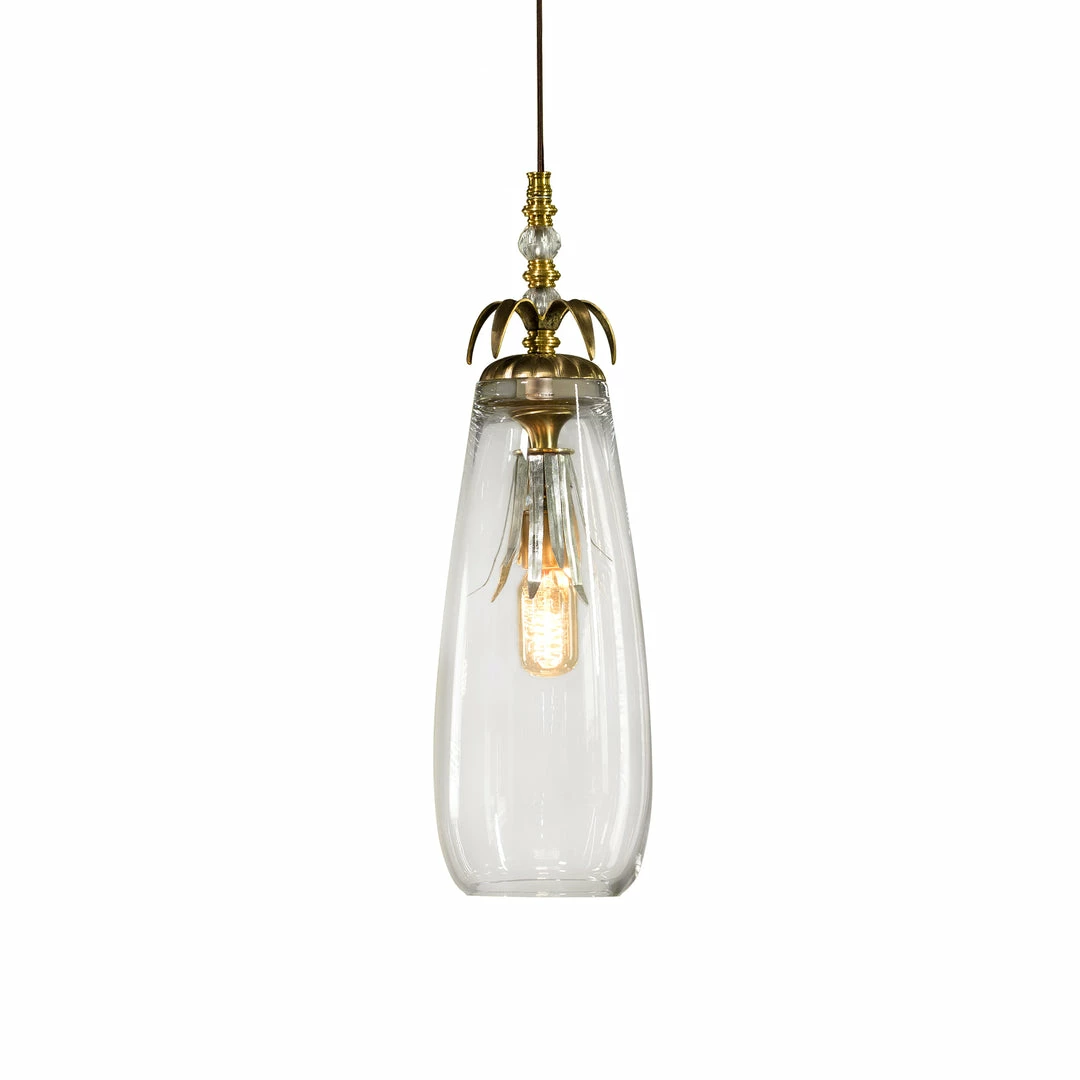 Elegant clear glass shade pendant with hand painted solid brass and leaded crystal.