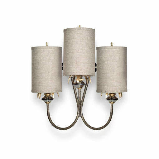 Hand painted in silver with brown faux finish with cut smoke glass details.