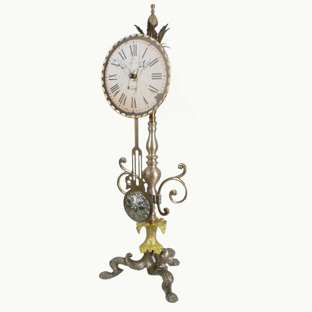 Beautifully painted time piece in antique golden tones and metal face in cream and antique gold.