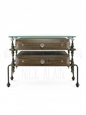 Wood, Solid Brass, Iron, Crystals, snake skin. 2 1/2 yards required if doing COM (customer own material)