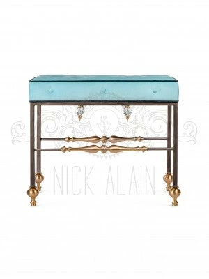 Solid wood frame construction, Solid Brass, Iron, Upholstery.
