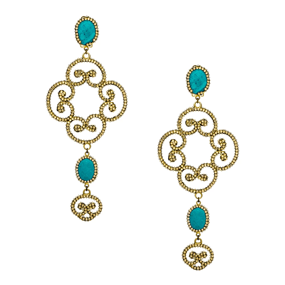 Roni Blanshay Gold Swarovski Pave Gold Plated Earring With Turquoise Stones